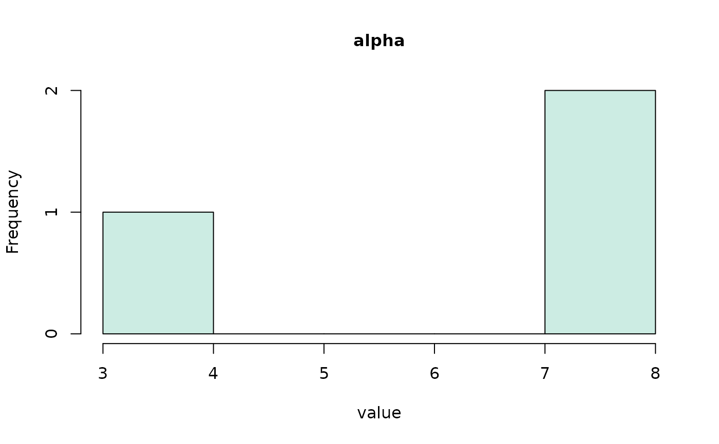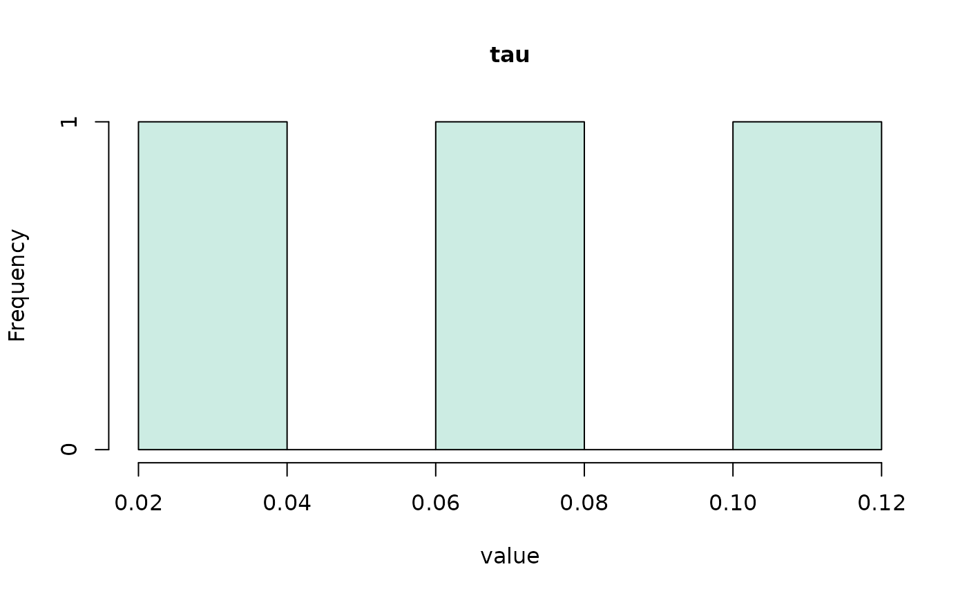 hist(coefs, bundle_plots = FALSE) # calls hist.coefs_dm method of dRiftDM