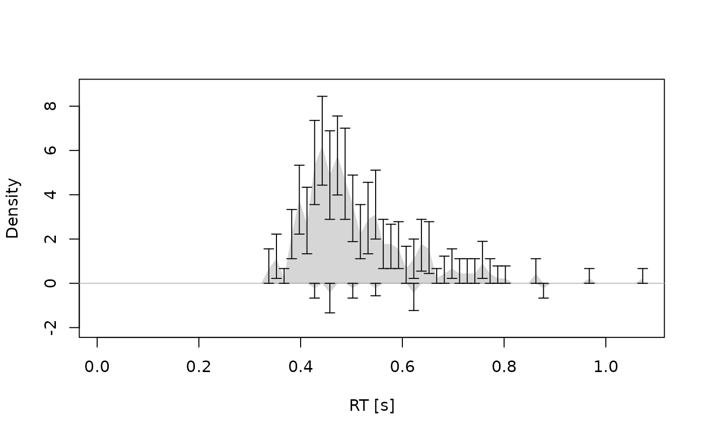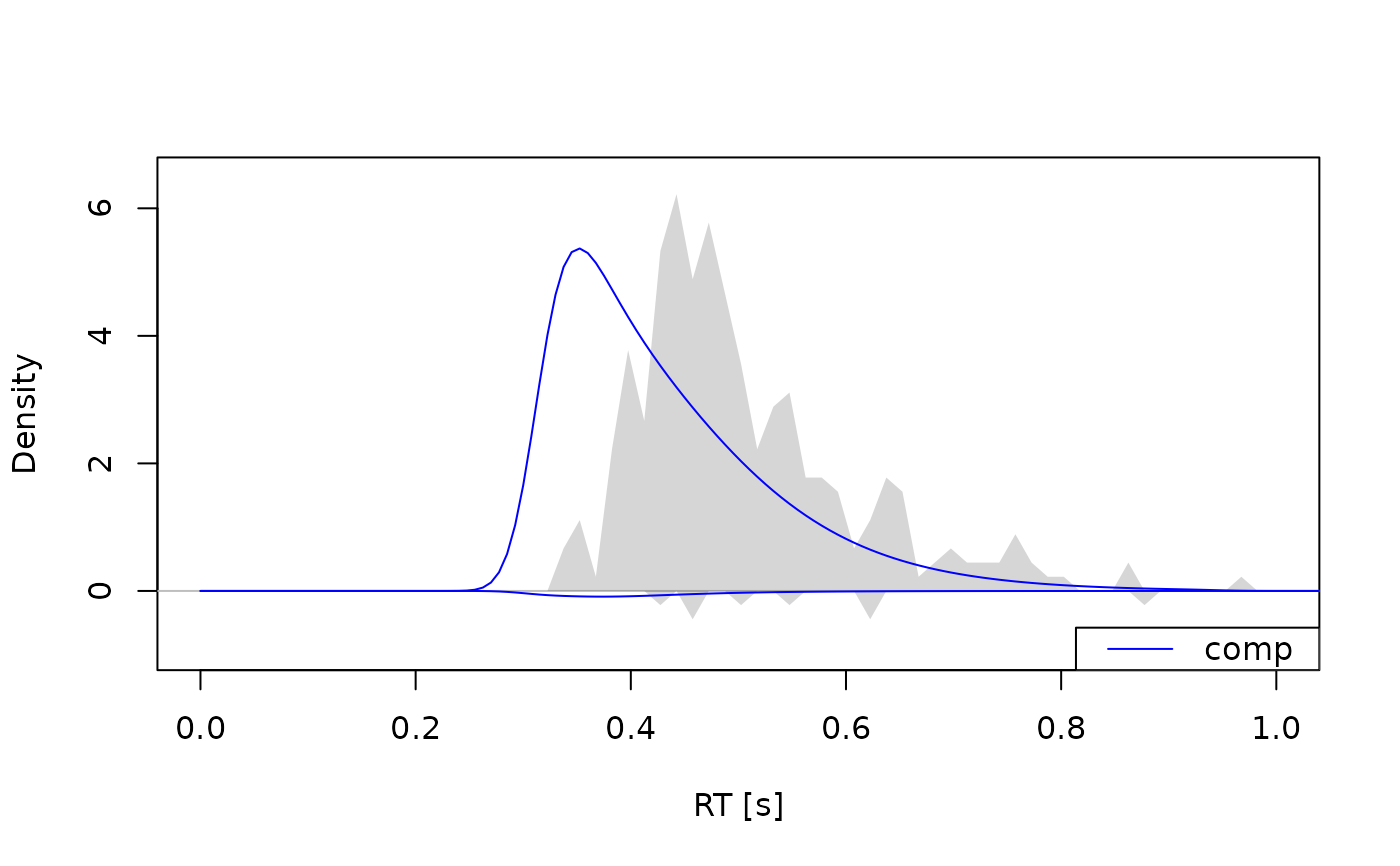 Visualizes observed and/or predicted response time distributions. Useful for assessing model fit or exploring model behavior.